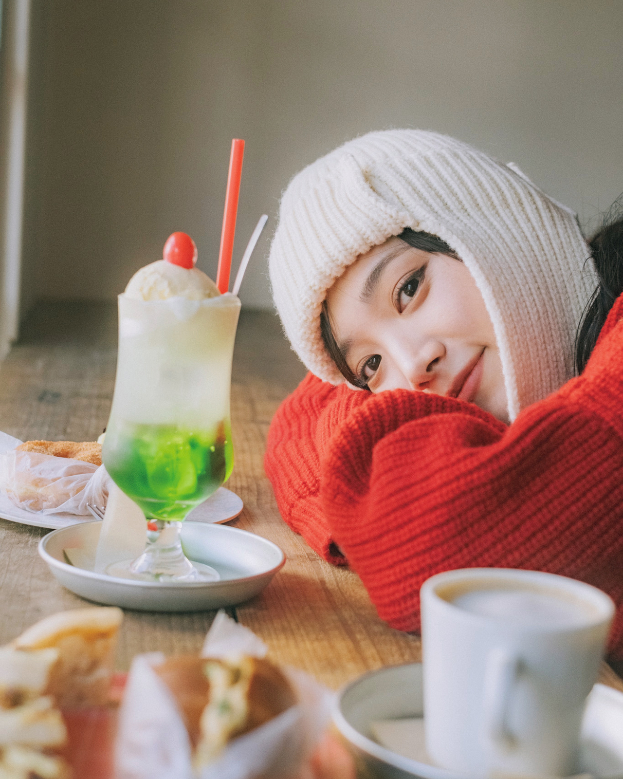 - どこから光がきて、どの角度から撮るかを考えるのがポイント。今回は真横から自然光が当たる席で撮影