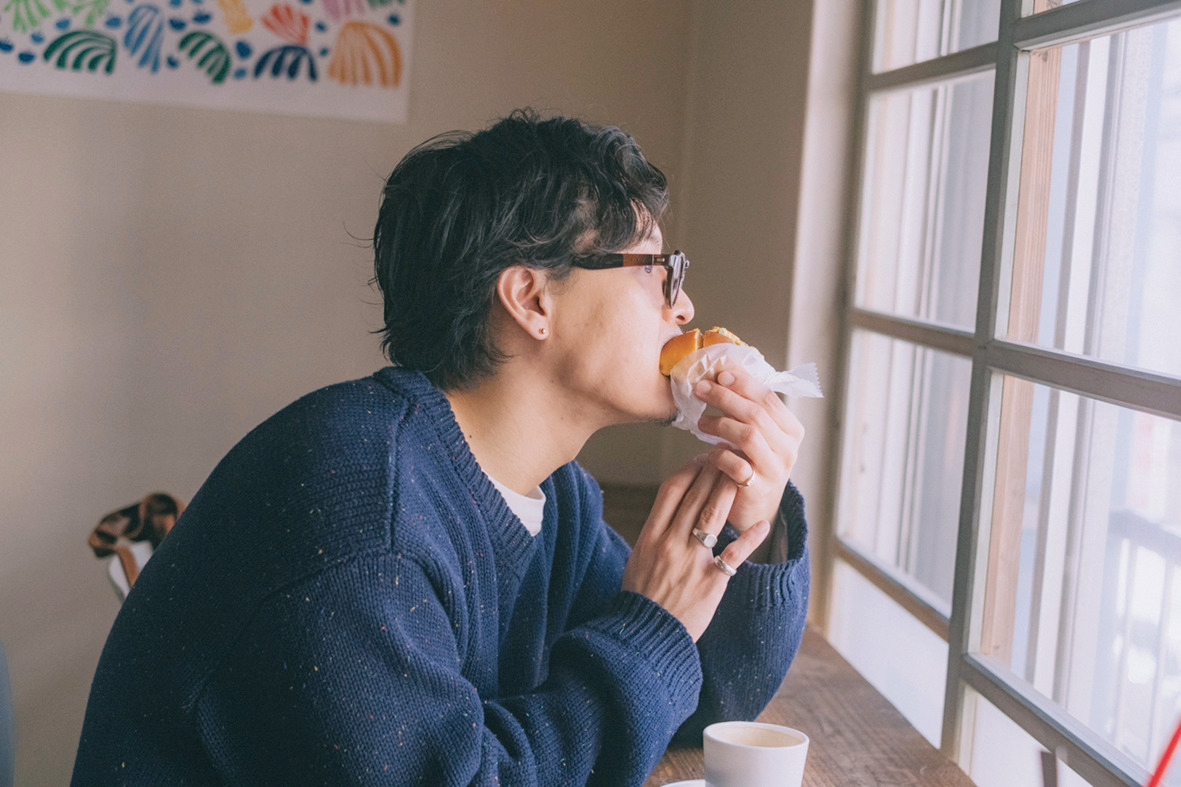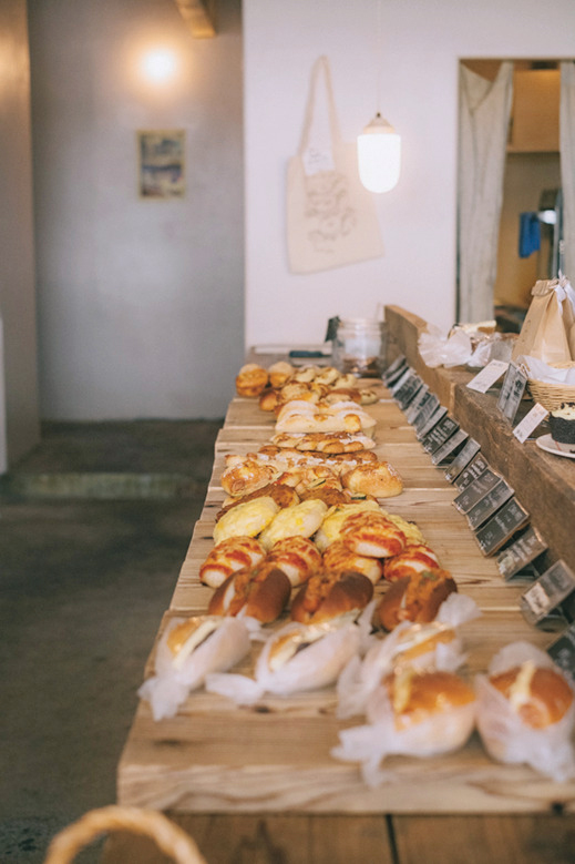 印刷工場をリノベした一軒家カフェ。毎日30種類ほどの焼きたてパンが並ぶ。