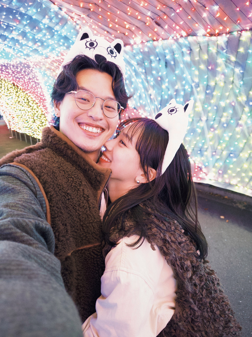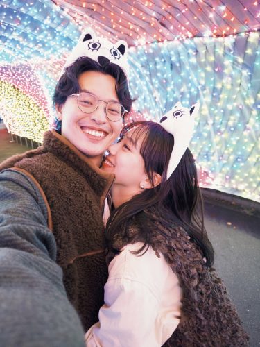- 自分たちの前後にイルミがある場所や、電球の近くでカメラを持つと背景もきれいに写っておすすめです