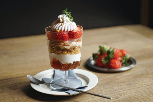 家具や植物、食品がそろう複合施設。期間限定「苺とライチ茶の豆乳ティラミスパフェ」がおすすめ。