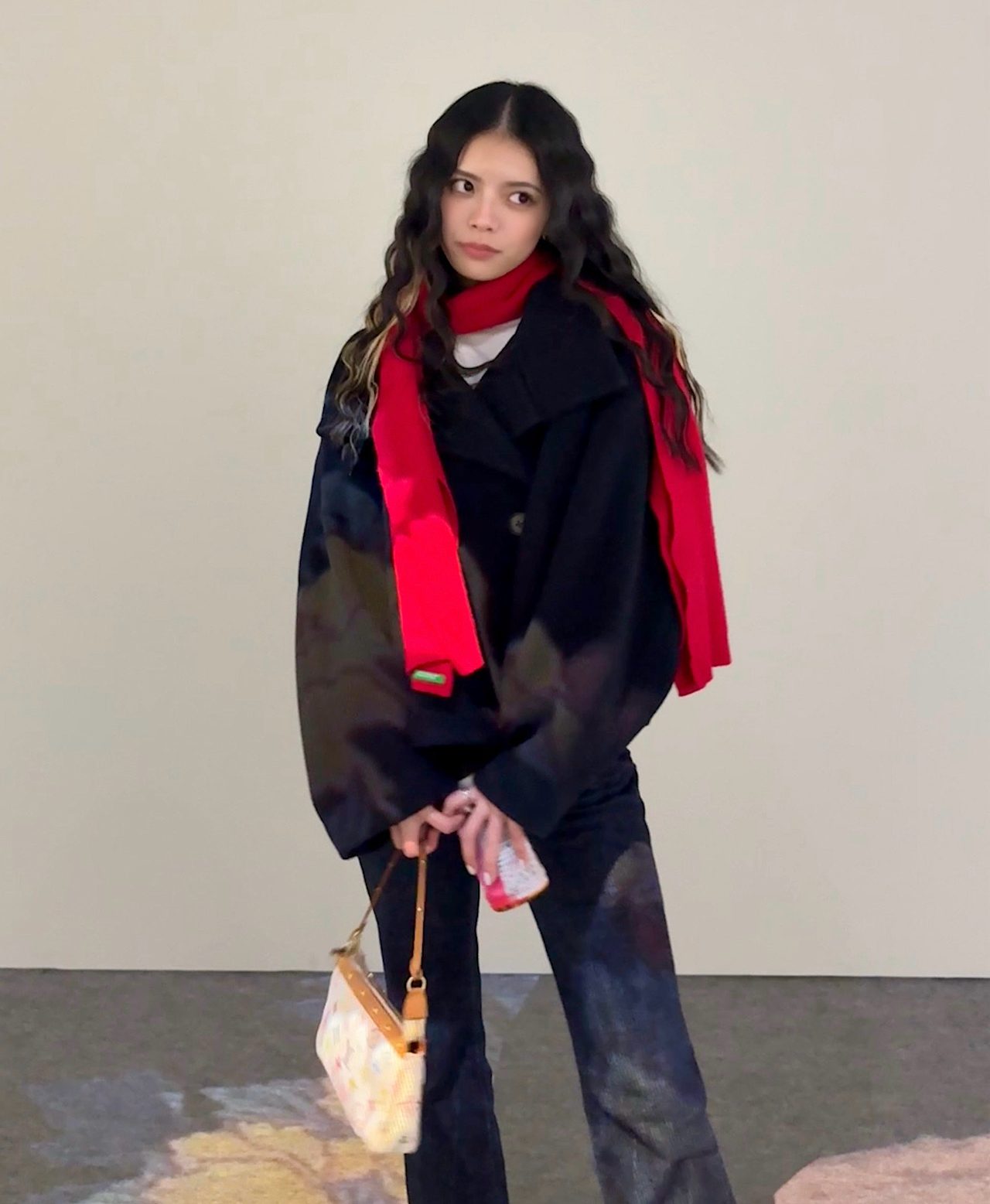 薄手なのでコーデのワンポイントに使いやすく、真っ赤なカラーはクリスマスシーズンにもぴったり(もう過ぎちゃったけど……笑)。