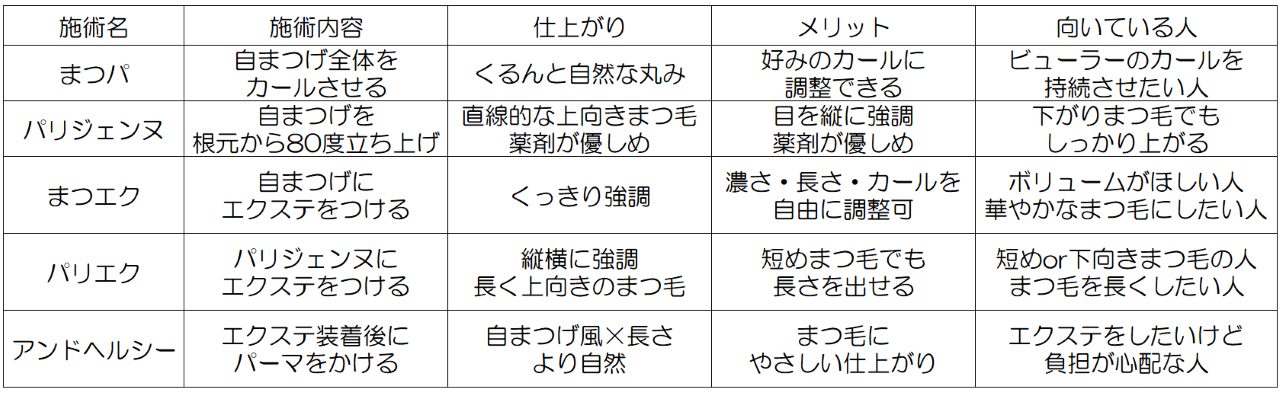 まつパ、マツエク、パリジェンヌなど様々な方法があるので自分に合ったものを選ぶのがおすすめです。