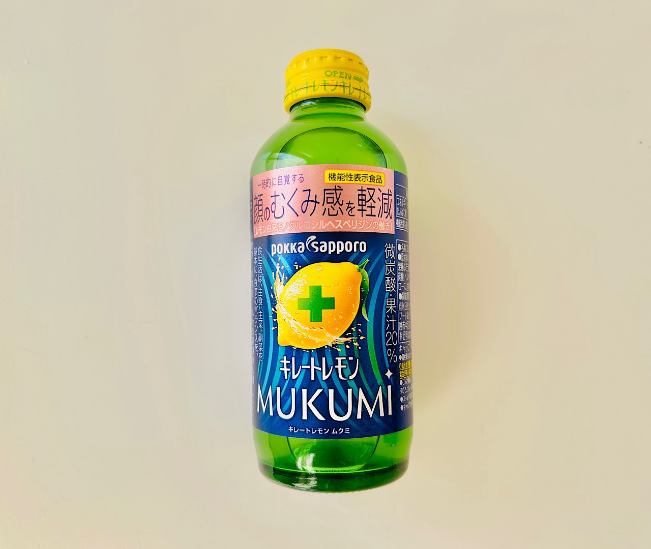 私はむくみ対策ドリンクとしてメジャーな「キレートレモンMUKUMI」を飲みました。「キレートレモンMUKUMI」は機能性表示食品に登録されているドリンクで、レモン由来の成分が顔のむくみ感を軽減するそうです。
