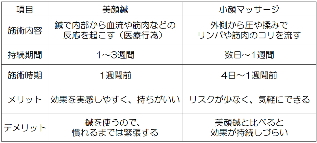 そんな効果抜群な小顔矯正ですが、内出血や鍼による傷など痕になってしまうリスクが少なからずあるので、前日や当日の施術は避けましょう。結婚式や成人式など大事な予定の1週間前以降は施術をお断りしているサロンがほとんどなので注意!