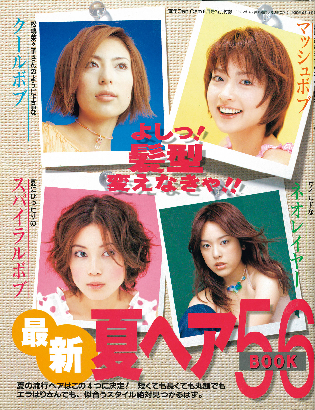 ファッションが派手で存在感があったこの時代は、服とのバランスが取りやすいボーイッシュなヘアが人気で特集にも採用! メイクは引き算で、単色アイシャドウなどシンプルで大人っぽい顔に仕上げていました。