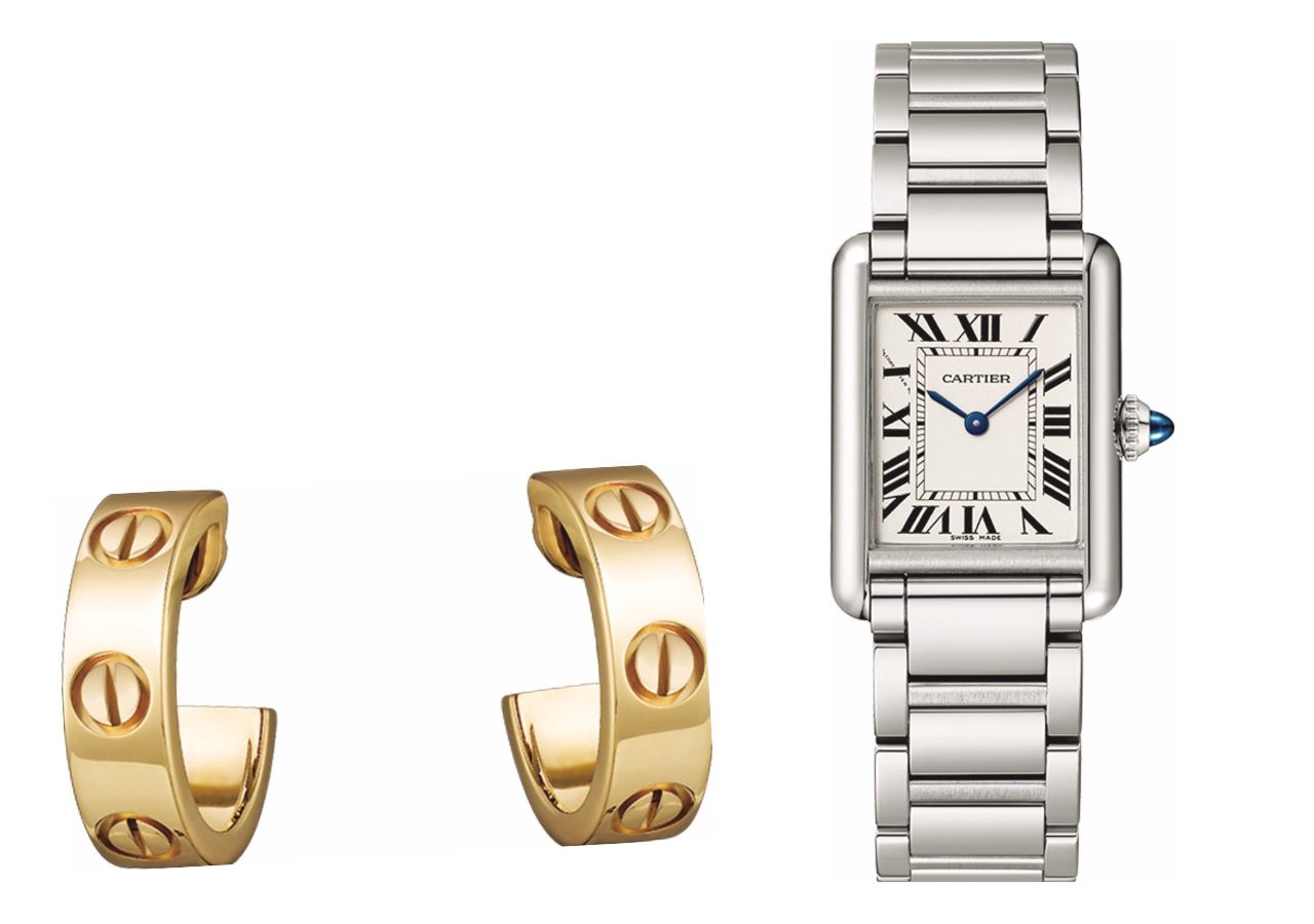 ①Cartier(カルティエ)のLOVEイヤリング&タンク マスト ウォッチ