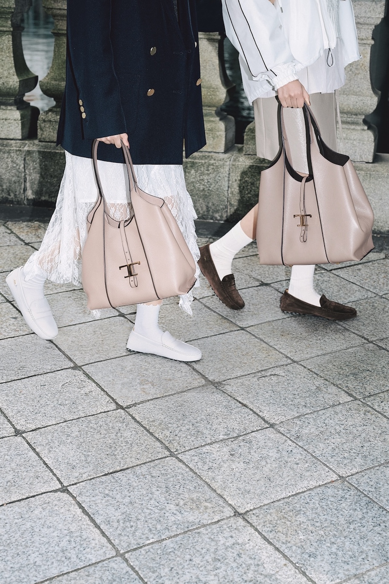 ③TOD’S(トッズ) のT タイムレス ショッピング バッグ&ゴンミーノ モカシン