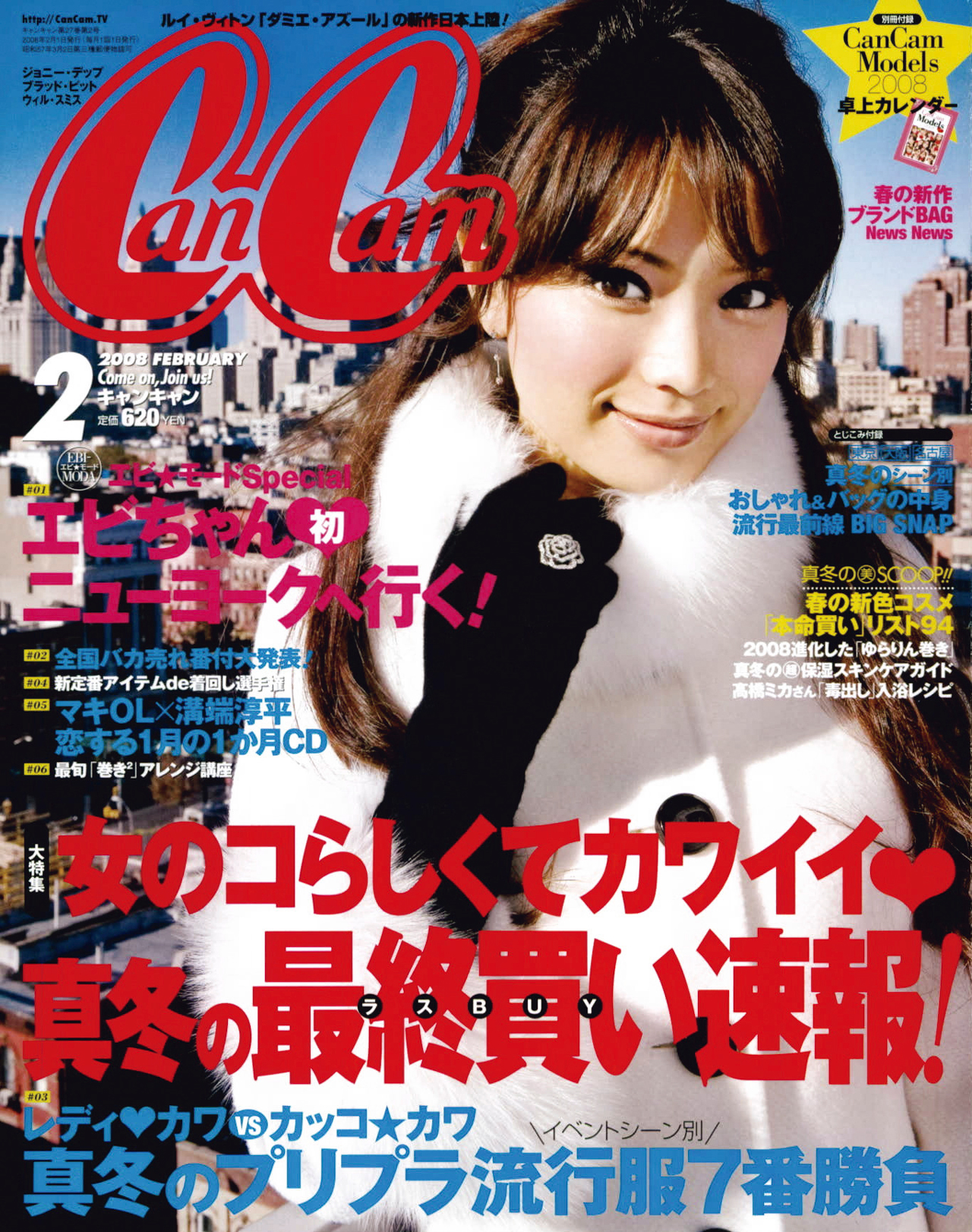 当時CanCamが提案していたかわいい系のエビちゃんOLが20代女子のお手本に! エビちゃんが着用する服が即完、CanCamの発行部数も80万部超えなど、今も残る歴史的快挙に。