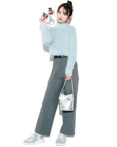 【1/18のコーデ】UNIQLOのグレーパンツで♡ ふわふわニットをハンサムに!