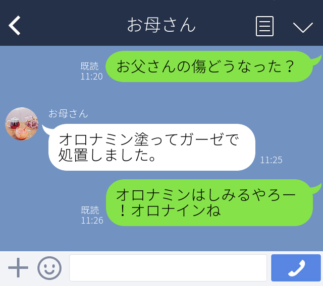 「父が腕を怪我したことに対してのやり取りです。