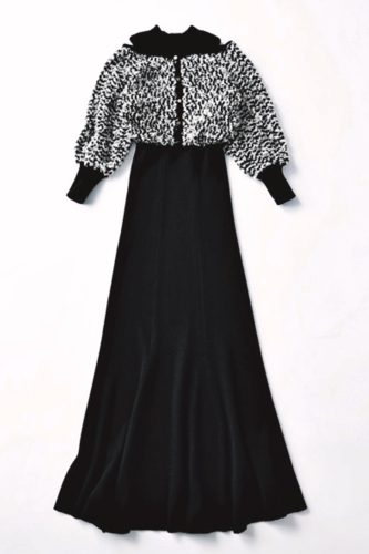 【安未】構築的なパワショルとジャケットライクなエッジのきいたデザインなら、1枚でドレスアップが叶う。