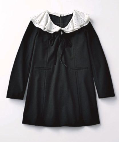 【右】大人キュートなラッフル襟で愛らしさをプラス