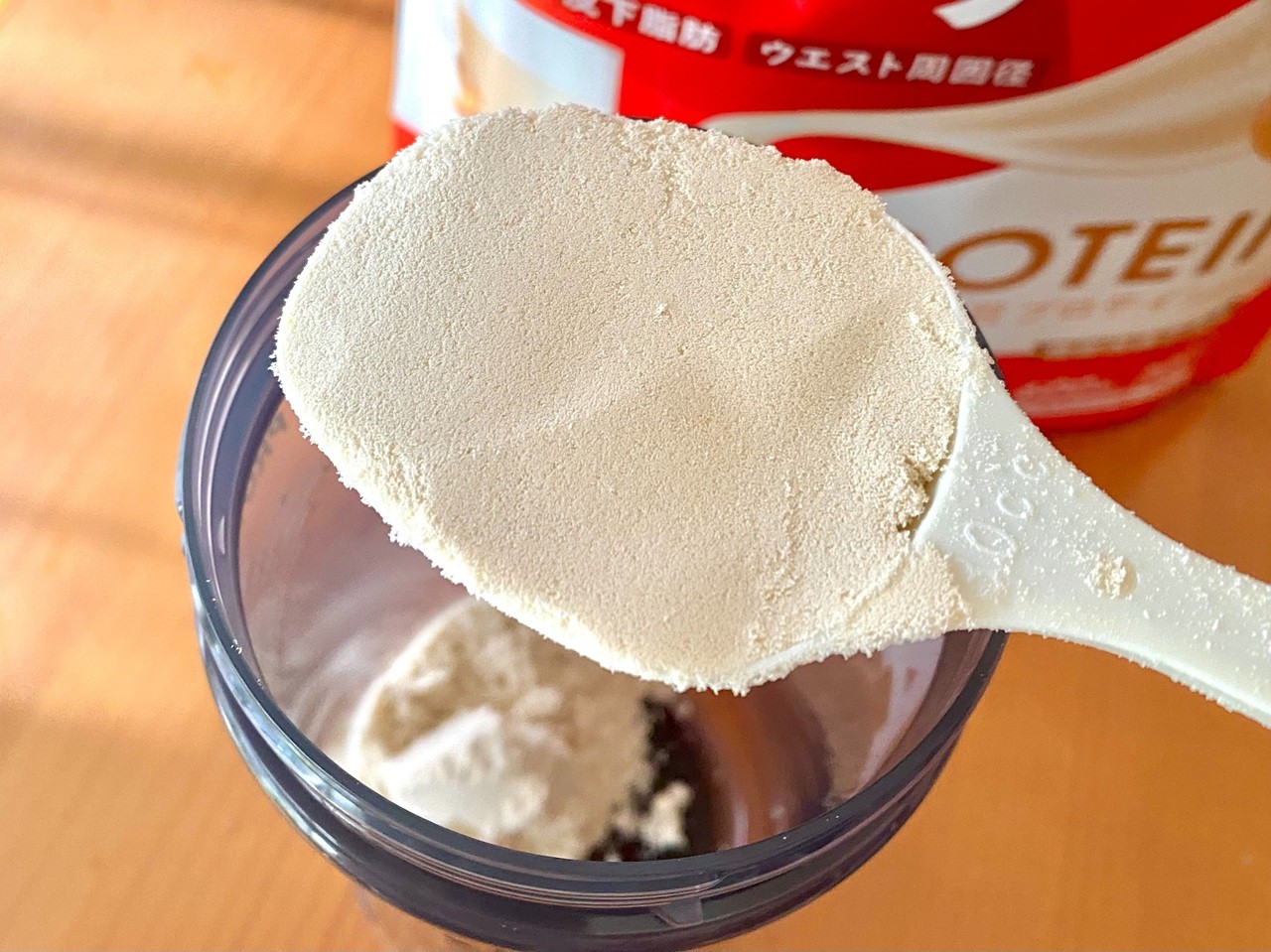 また、プロテインを飲むとお腹がゴロゴロしやすい私ですが、こちらは飲んだあともお腹の調子が穏やか。乳糖を含まないソイプロテインなので、豆乳や水で溶かして飲めば、乳糖不耐症の方でも取り入れやすそうです。