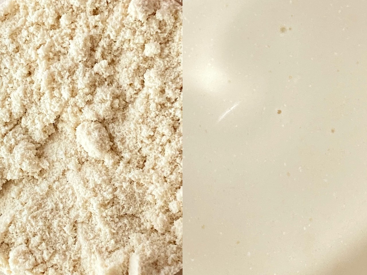 その点、ビューテインは十数回よく振っても泡立ちが控えめで、泡が落ち着くのも早い! 「水より牛乳や豆乳で割るほうがなじみやすい」とよく言われますが、それをふまえても、ほかのソイプロテインに比べて扱いやすさを感じました。