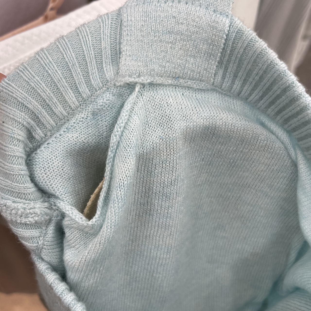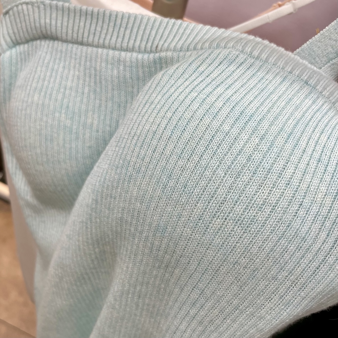 実はこのニットタンクトップ、生地を近くでみてみると、ミント系の糸やブルー系の糸など、いろいろな色合いの糸がミックスされて編み込まれていることがわかります♡ それがとにかくかわいいんです!