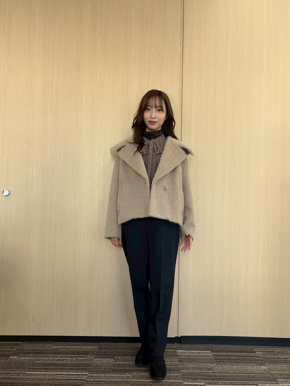 ■1/23(金)/ベージュショートコート×ネイビーアンクルパンツ