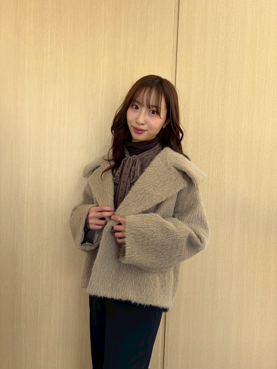 ベージュのグラデーションを作って、大人な印象に【林さんのベージュショートコート着用画像6枚】