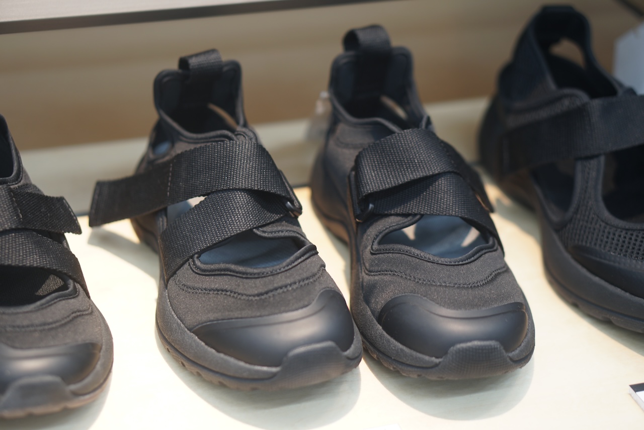 今回は黒のみの展示でしたが、サンドベージュ・ブラウンといった肌なじみの良いニュアンスカラーを中心としたカラーバリエーションで、アウトドアの場面だけじゃなく、普段のお出かけから、コーデに合わせてたくさん履けます! 無難な黒とお出かけ用のもう1カラーの2色買いをしたい気分♡ カラーの靴下と合わせてアソビを入れても◎