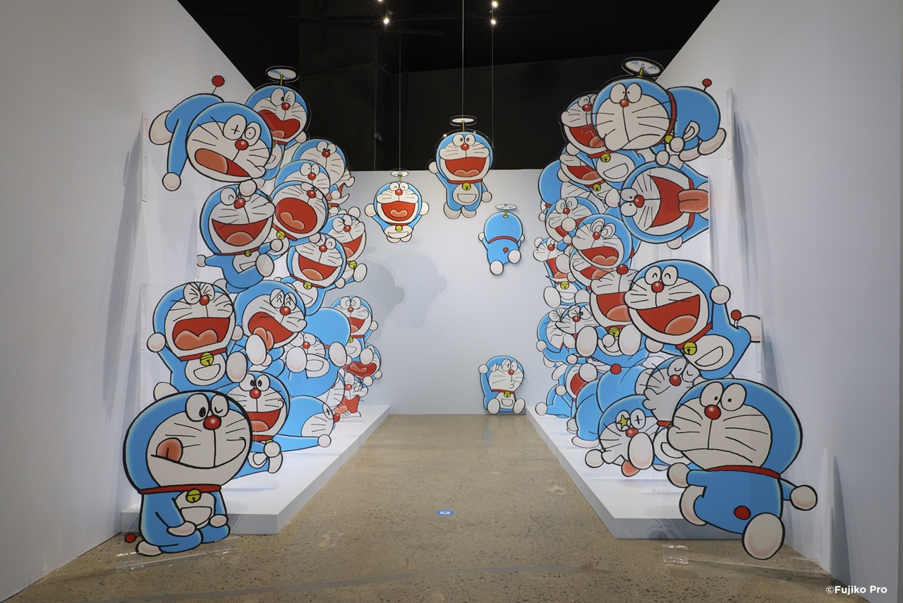 さまざまな表情のドラえもんたちが立体的に登場する華やかな回廊。