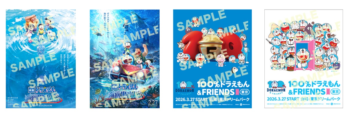 『映画ドラえもん 新・のび太の海底鬼岩城』ポスター(2種)と『100%ドラえもん&フレンズin東京』ポスター(2種)をコレクションしやすいA3サイズの特別仕様にしたセットを抽選で50名様にプレゼント!