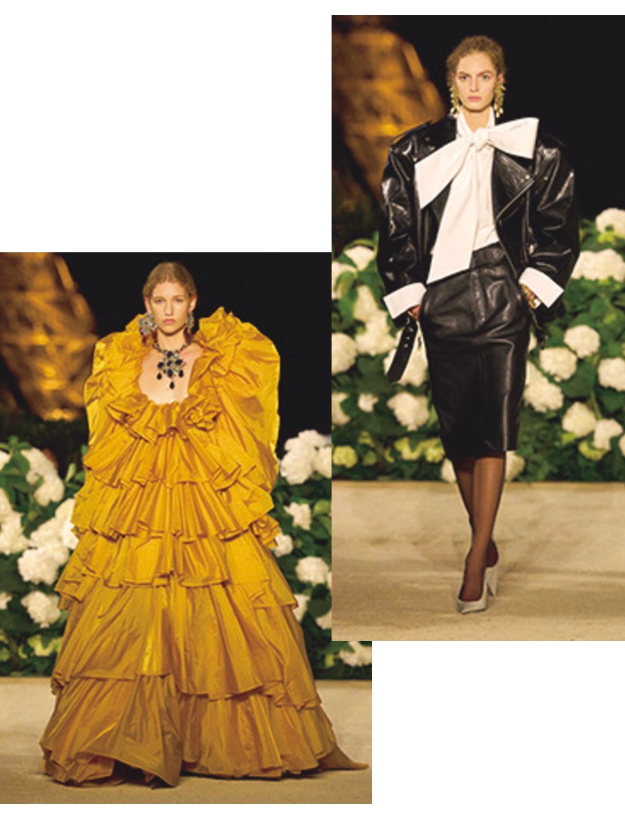 エッフェル塔と白い紫陽花を背景に、夜のパリを彩ったコレクション