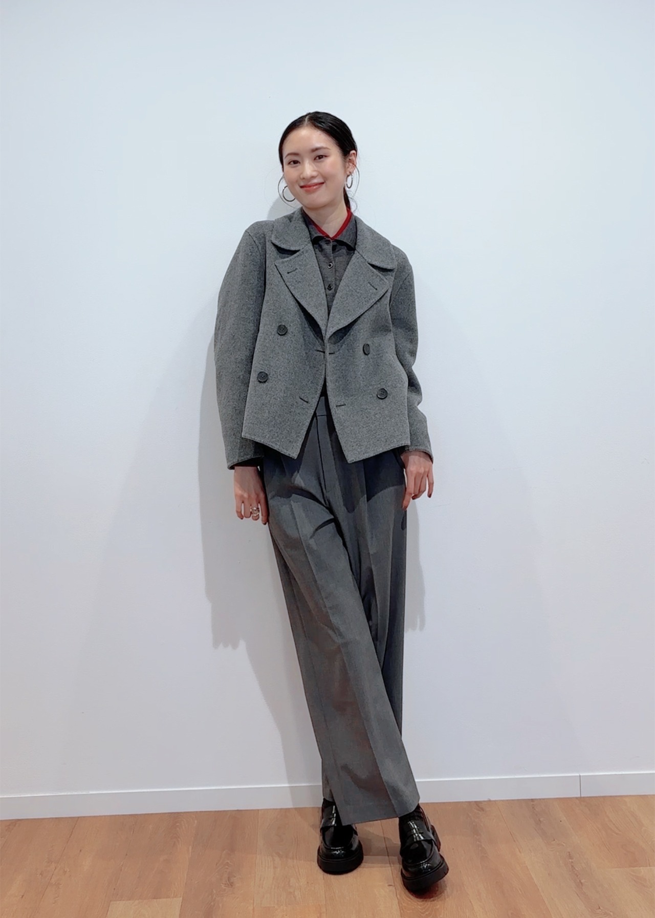 【173cm】廣川茉音さんは…グレーのワントーンで大人っぽく