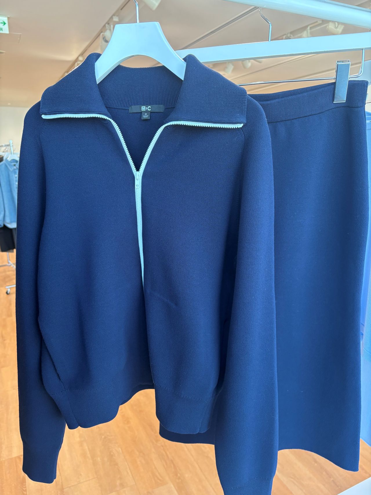 同素材のニットスカートとセットでGETしておけば、通勤やデートでの出番も確実に増! カーディガンの着丈が長めなので、タイトスカートの腰まわりがさりげなくカムフラージュできて上下のバランスもシルエットもいい感じ。気合い入ってる感はないのに、ちゃっかり女っぽさもアピールできるセットアップはコスパ最強。×スニーカーもこなれてるし、靴下+ローファー合わせも絶対かわいい! ということで、ネイビーはスカートもお気に入りに登録しました♡