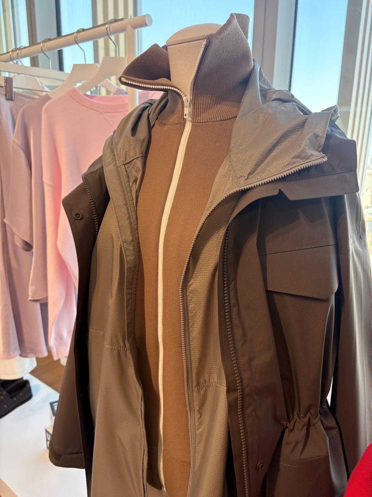 カジュアルな気分の日は、スポーティなナイロンアウターをばさっと羽織ってこなれ感たっぷりの着こなしに。ブラウン系のグラデーションでまとめるのも簡単でいて今どきのコーデをつくる近道。肌寒い4月のスタイリングにも役立ちそう。