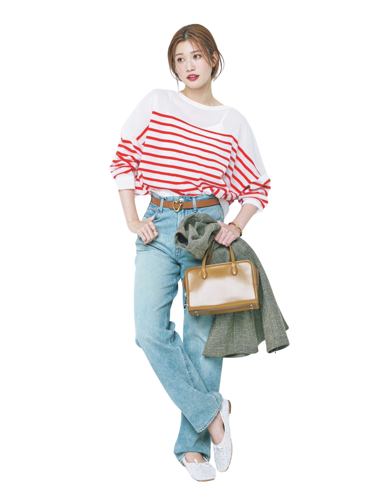 ◾️透明感のあるシアーな赤ボーダーで、カジュアルコーデに色気を♡