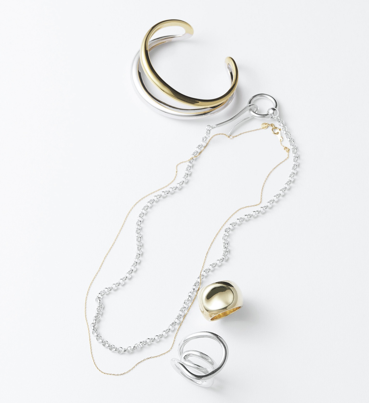 トーンをそろえがちなアクセだけど、MIXすることで奥行きが生まれておしゃれツウな印象も狙える!