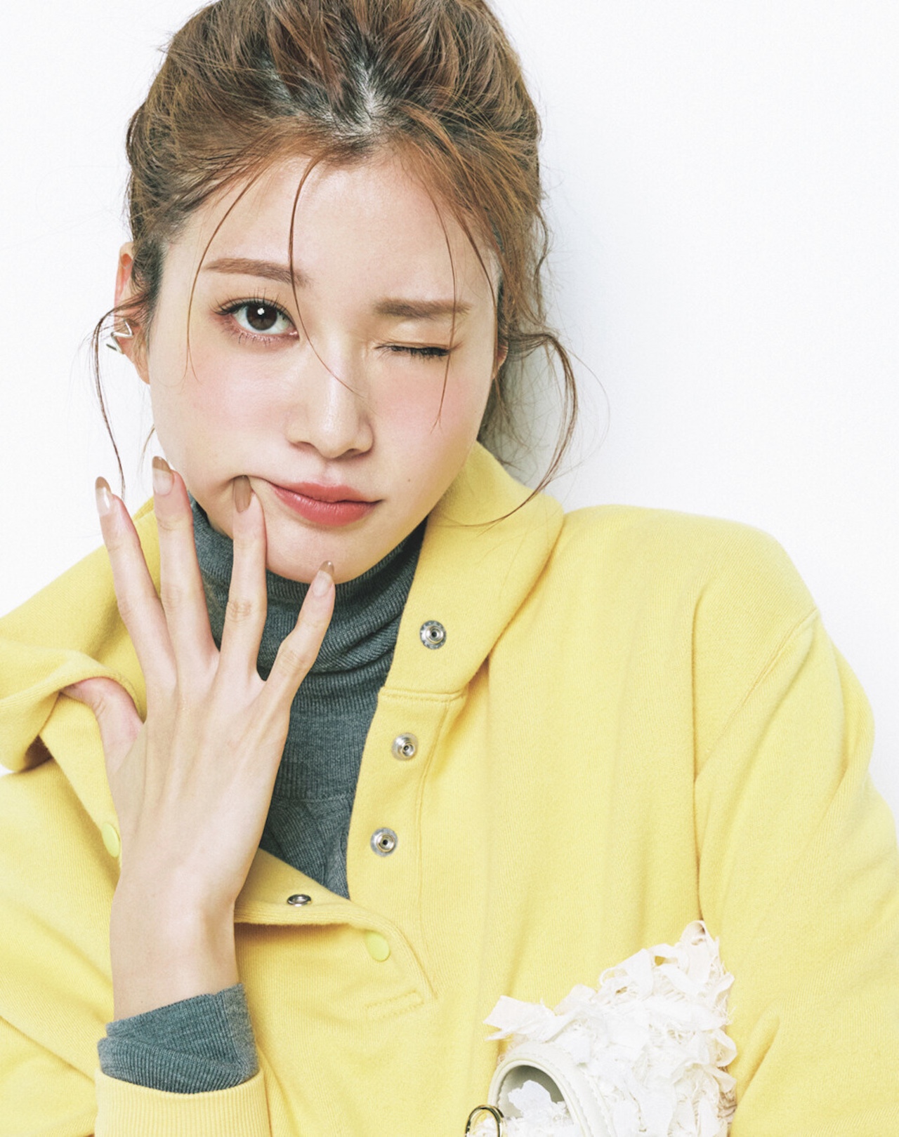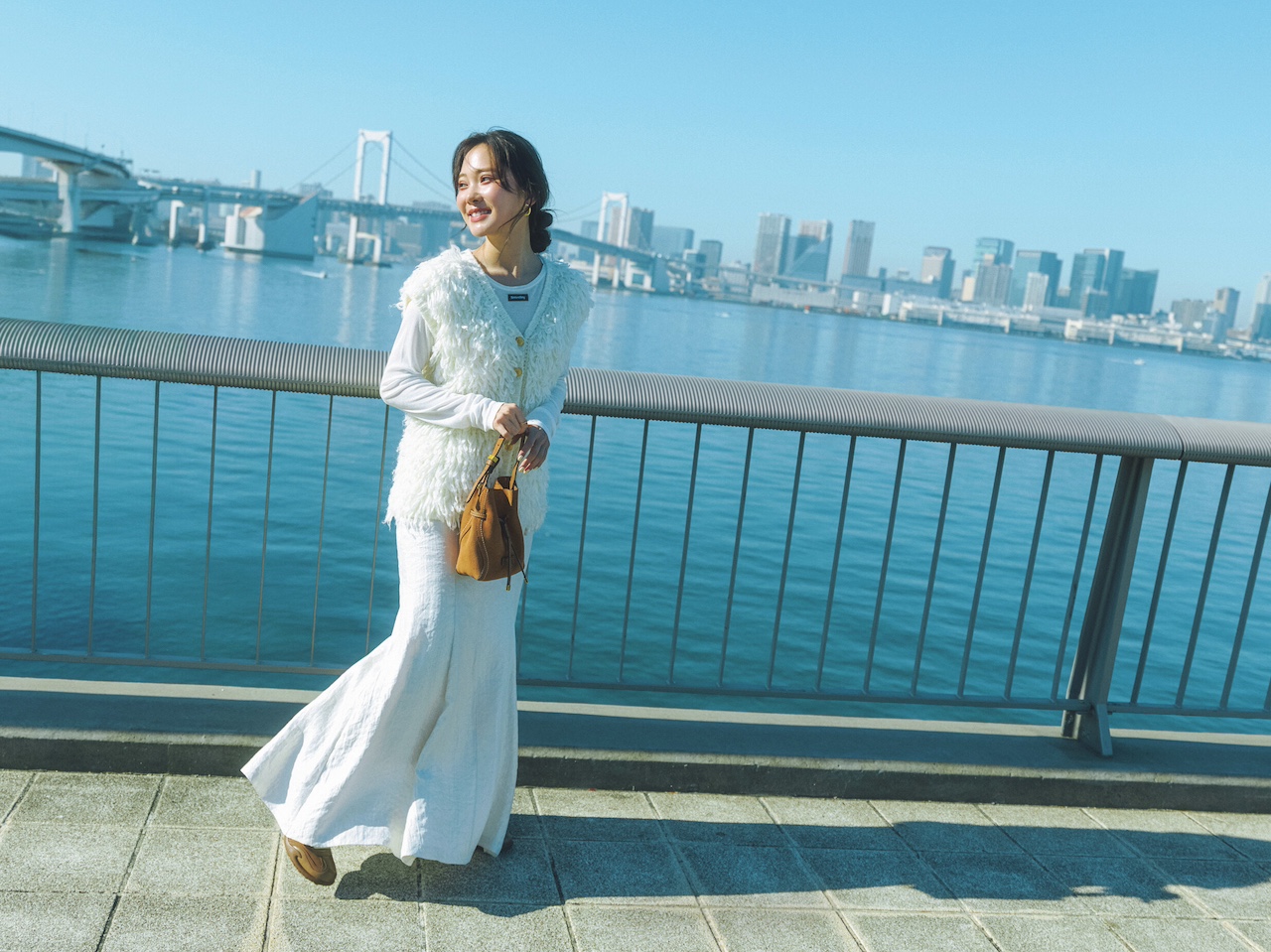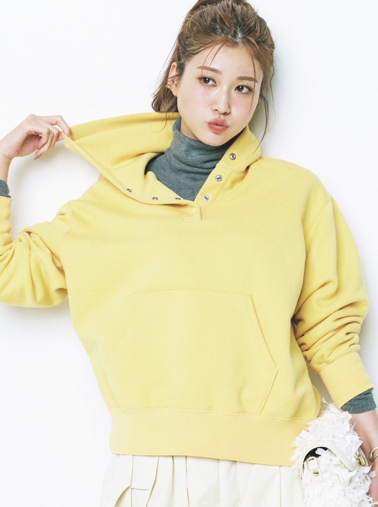 ◾️ふわふわニットと腰巻きアレンジでフレンドリーなオーラを