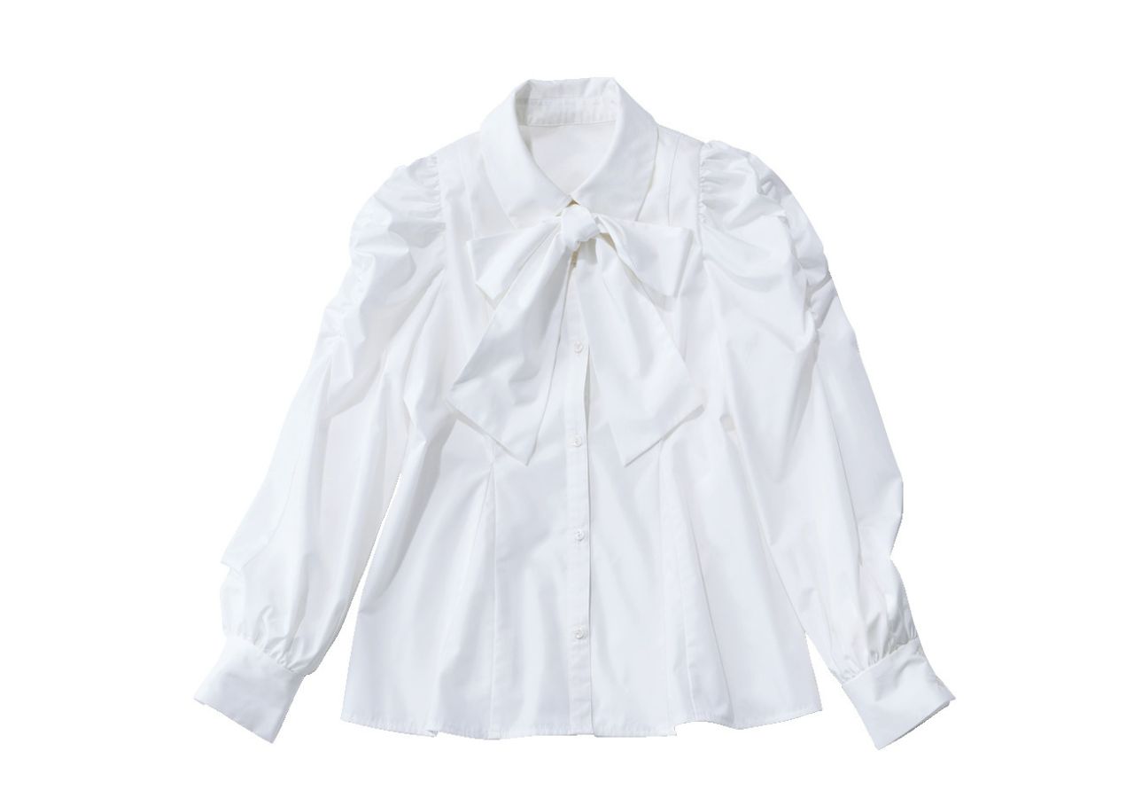 取り外しOKなリボンが着回しに効く「ビッグボウタイブラウス」