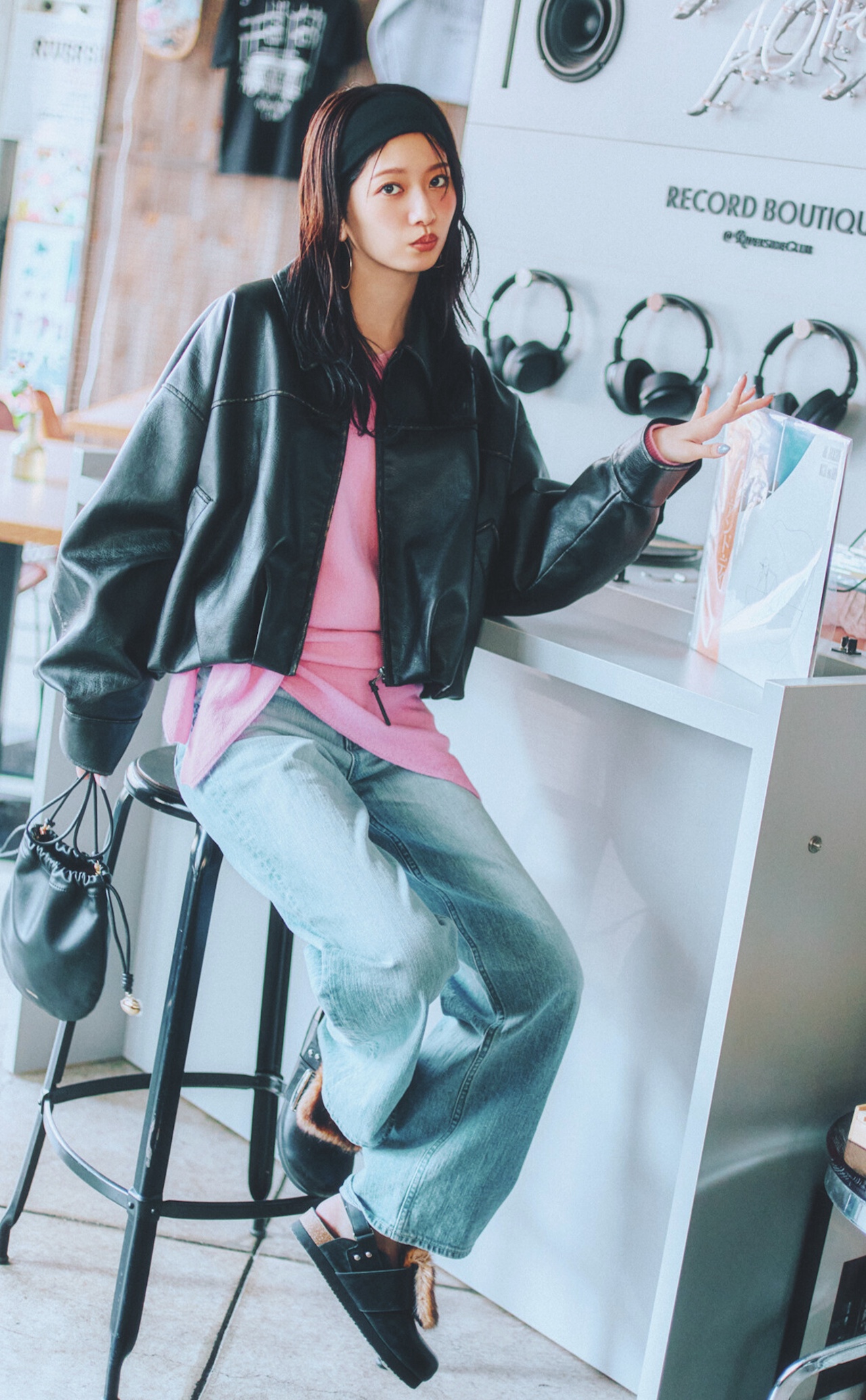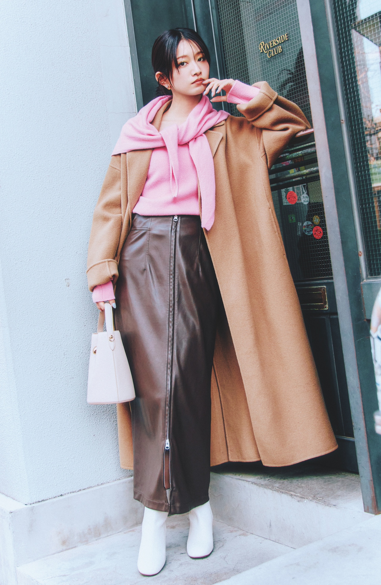 6.エッジィなアイテムをちりばめて甘ピンクをスパイシーに味変