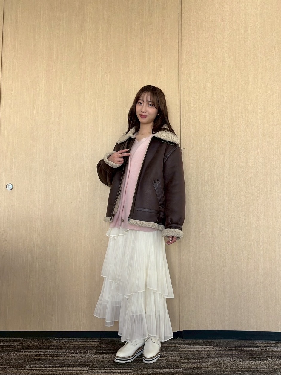 ■2/9(月)/ブラウンムートンブルゾン×アイボリーティアードスカート