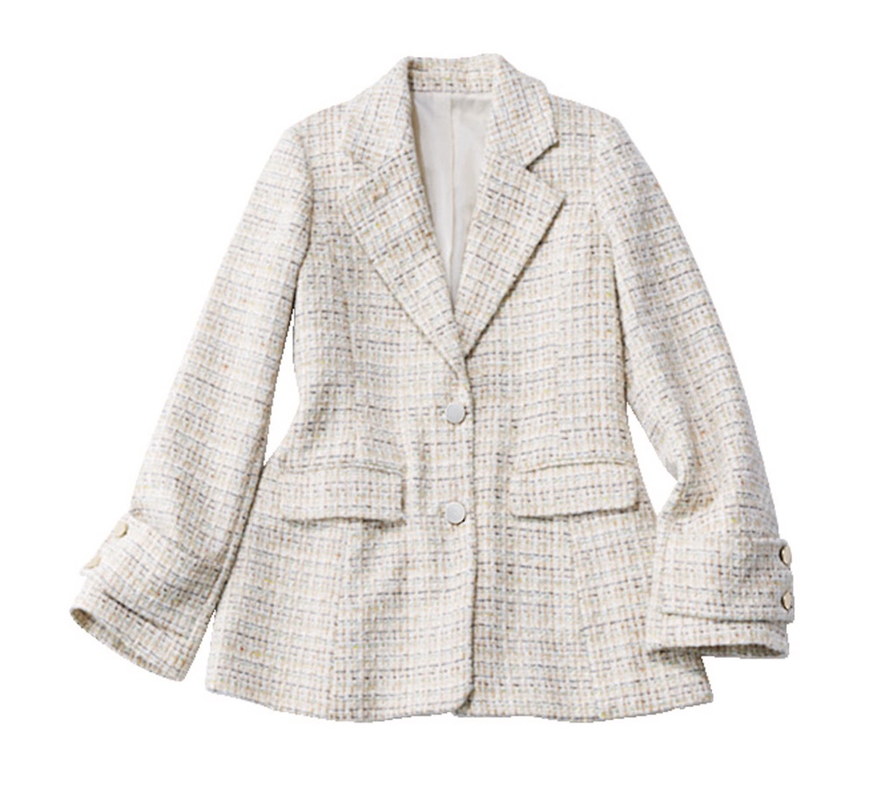 スタイリスト 奥富「春の展示会でオーダーしたアイテムの中にツイードジャケットがあったけど、どう着たい気分?」