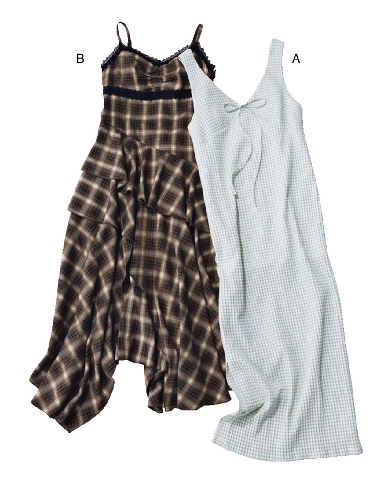かとし「着ます! チェック柄はMAISON SPECIALで買うことが多くて、最近はレトロっぽいチェック柄ワンピがお気に入り。花柄のアイテムはあまり持ってないんですけど、前にCanCamの撮影で着たGapの花柄のキャミワンピにビビッときてお買い取りしました」