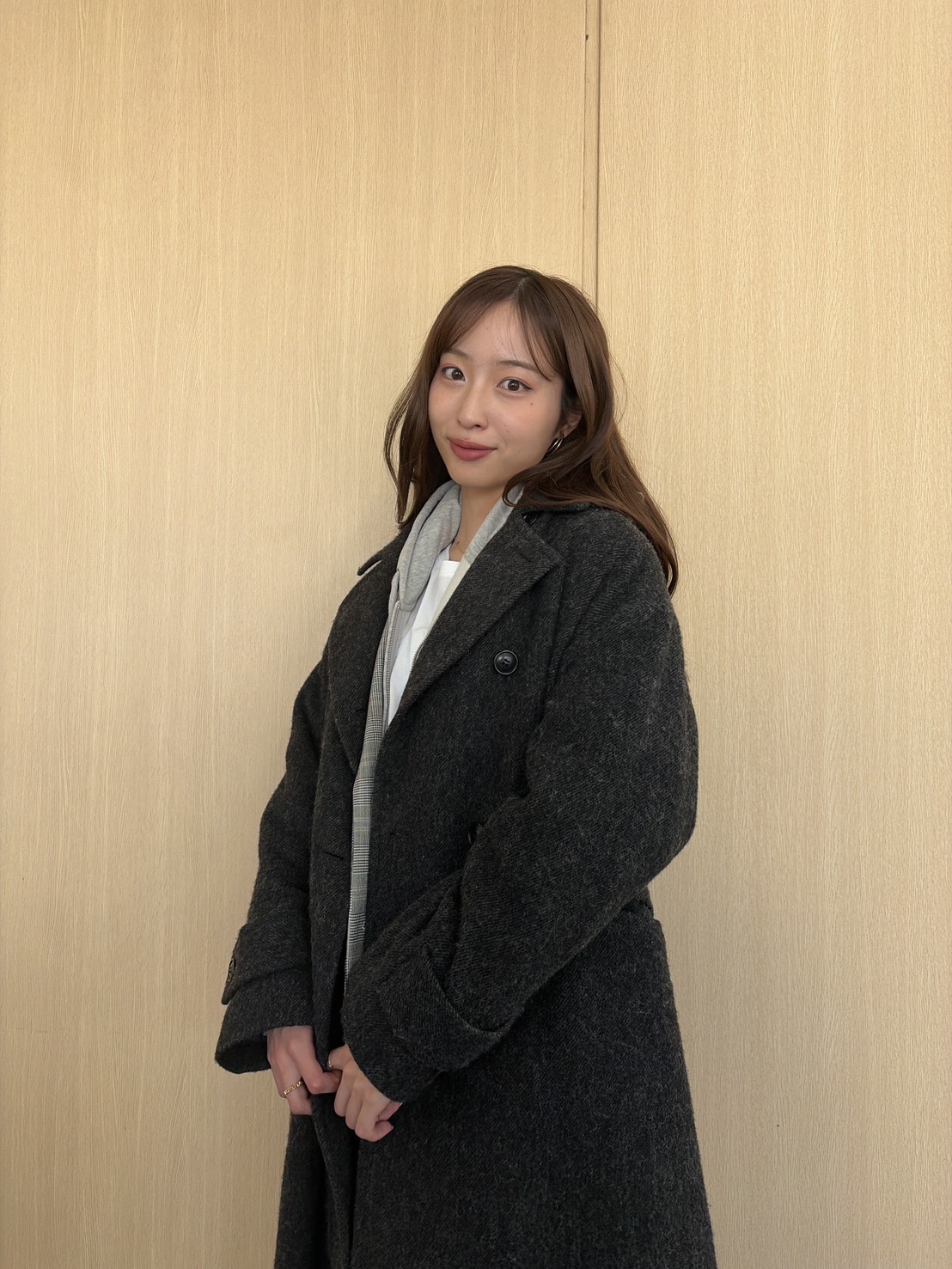 ジャケットにパーカ、コートを合わせる今っぽレイヤードテク!【林さんの黒ロングコート着用画像5枚】