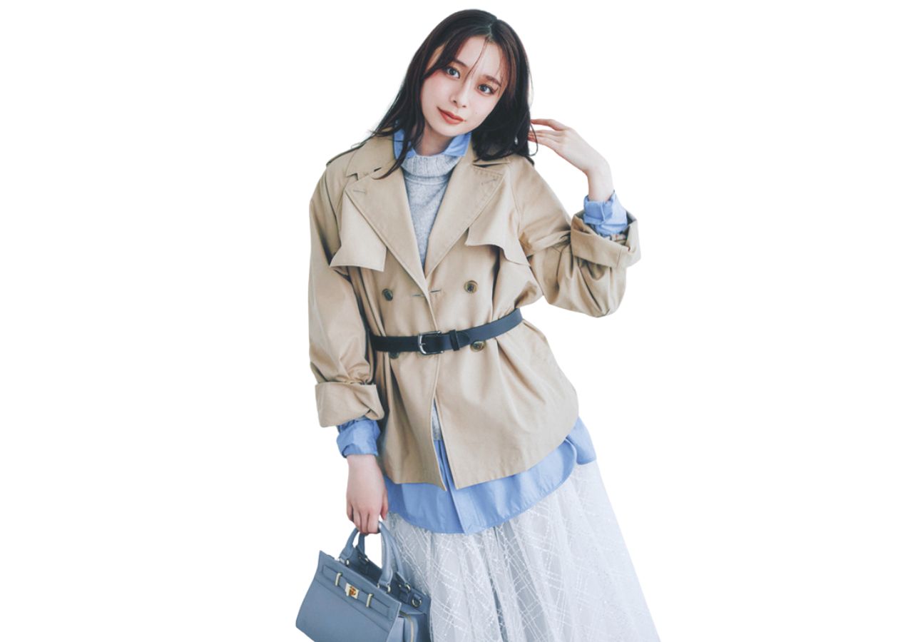 コーデに馴染みつつ、季節の先取りが叶うブルーグレー。