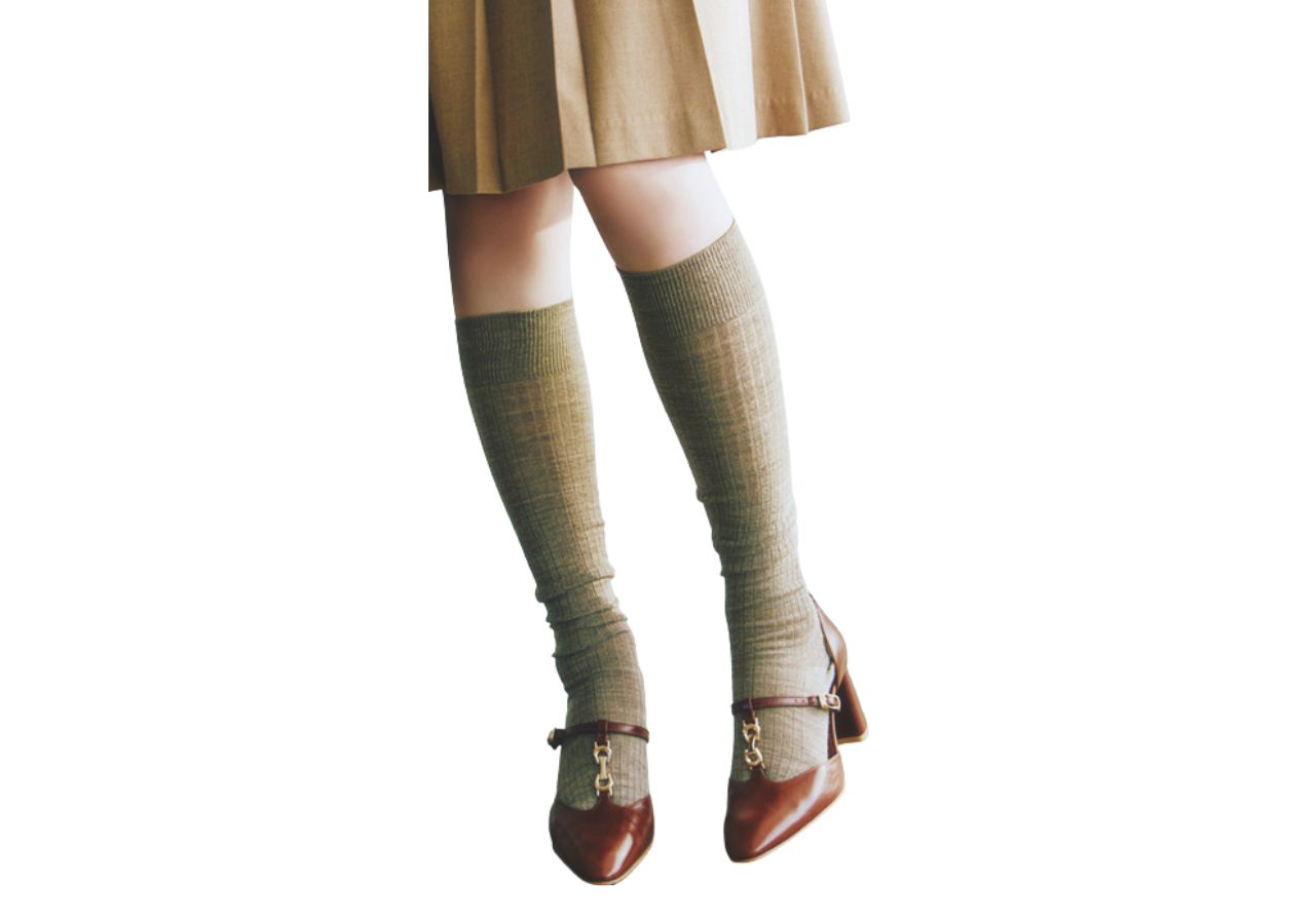 足元が変わると全体のイメージも変わる! 定番の白ソックスは毛足長めで表情豊かに。ハイソックス×レディ靴のクラシックなコンビも今ドキ♡