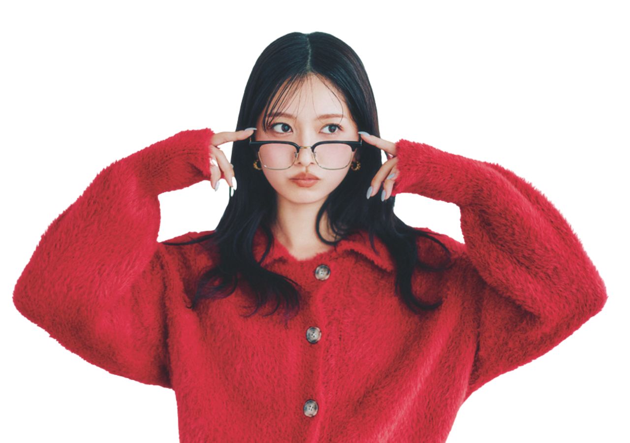 カーディガン¥7,700(Ungrid<Ungrid>)、メガネ¥52,800(アイヴァン PR<E5 eyevan>)、ピアス¥18,700(ココシュニック<ココシュニック オンキッチュ>)