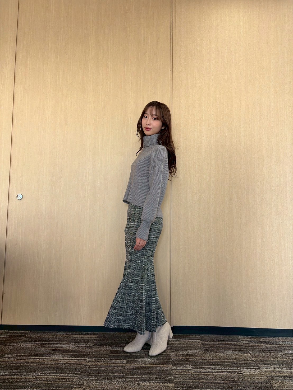 ■2/12(木)/ベージュジャケット×チェックフレアジャンスカ