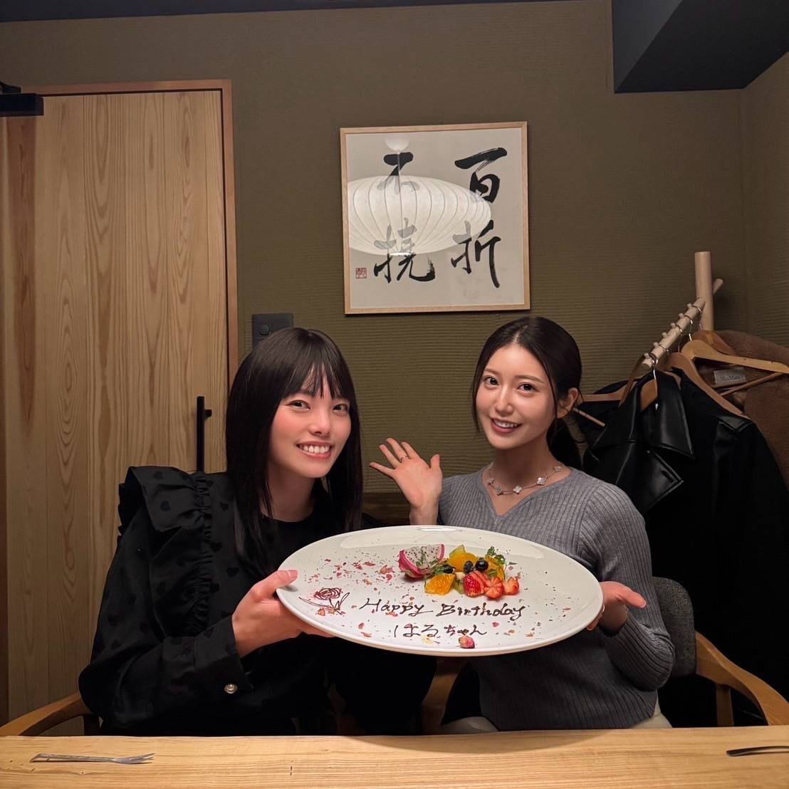 阿部なつきさんと焼き鳥を食べたはるちゃん。ごはんの後にバースデープレートが!