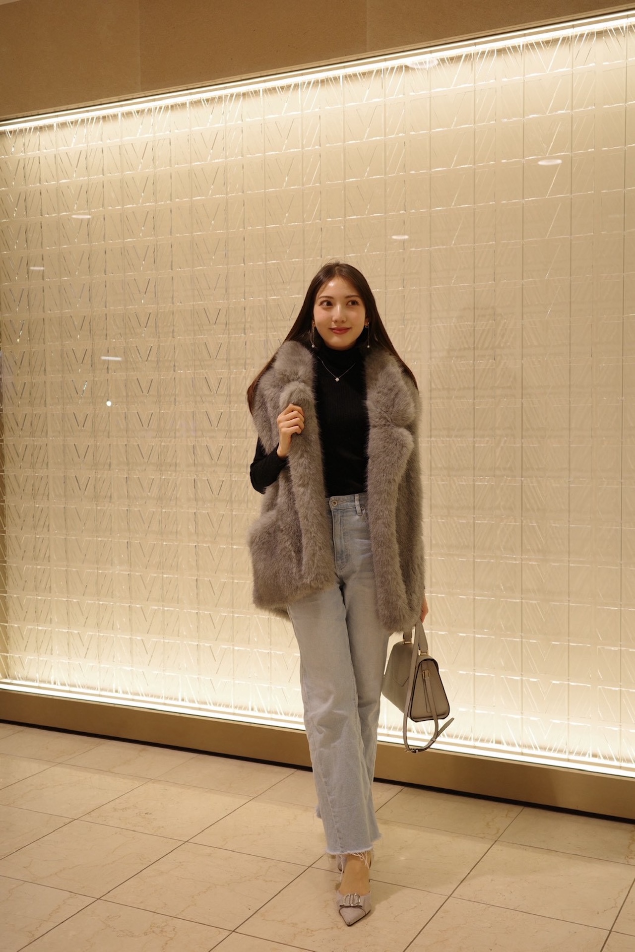 アウター/グランリップス、ニット/ユニクロ、デニム/ストラ