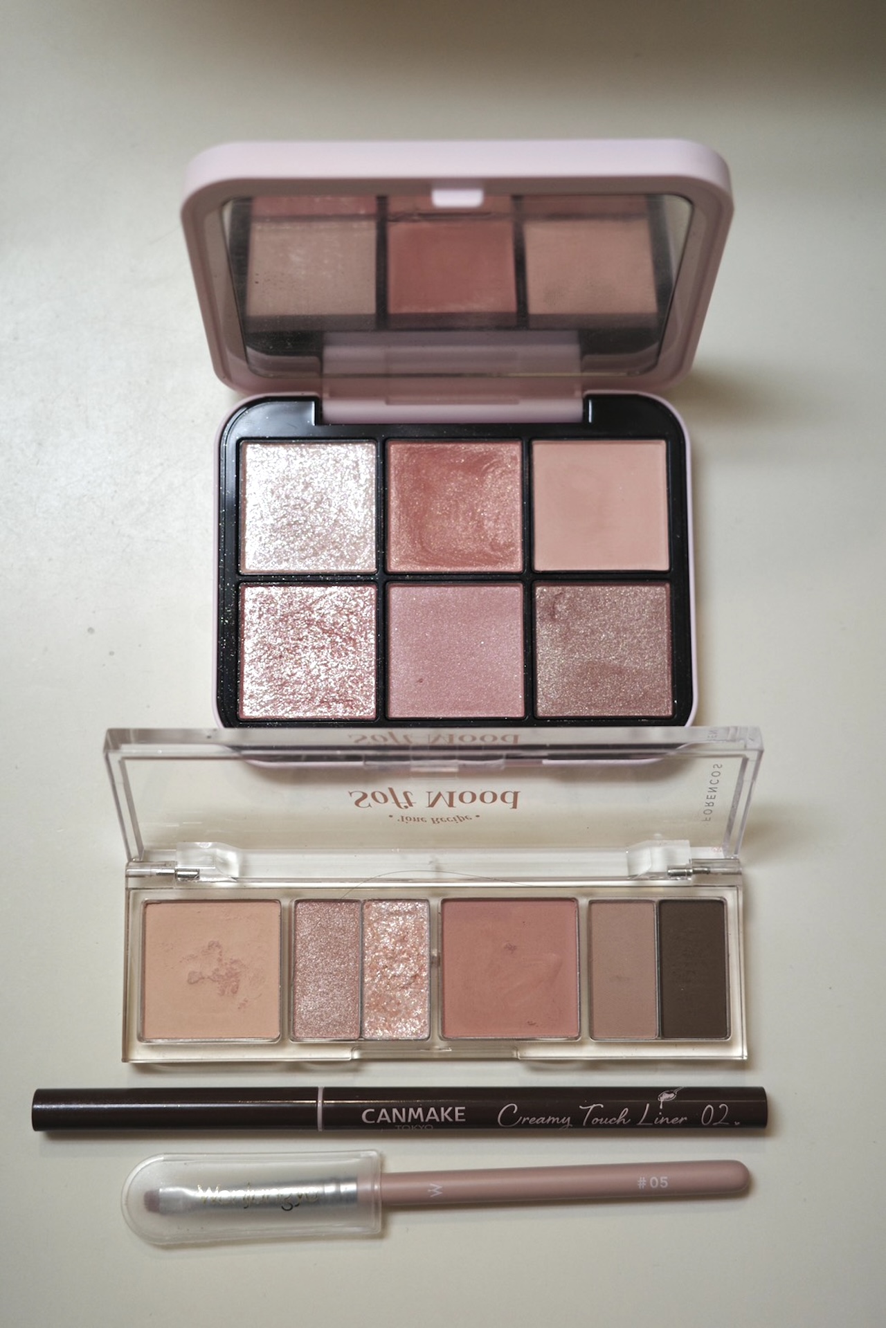 基本はアイシャドウパレットの締め色を『Wonjungyo(ウォンジョンヨ)』のブラシで。もう少し目力が欲しい日や崩したくないときは、『CANMAKE(キャンメイク)』のクリーミータッチライナーで引いたあと、綿棒で丁寧にぼかすのがこだわり。このわずか“1ミリ”の仕込みが、抜け感をキープしつつ黒目をグッと強調して、やりすぎ感のない印象的な目力を作ってくれる秘訣です♡」