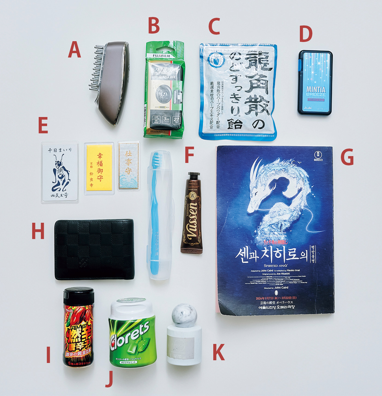 舞台やライブで喉を使うことが多いので、喉の乾燥対策にマヌカハニー系を常備。ステージに立つ前はスプレーが必須。最近は台湾の喉用シロップも入れています。冬は使用感がお気に入りのハンドクリームもマスト!