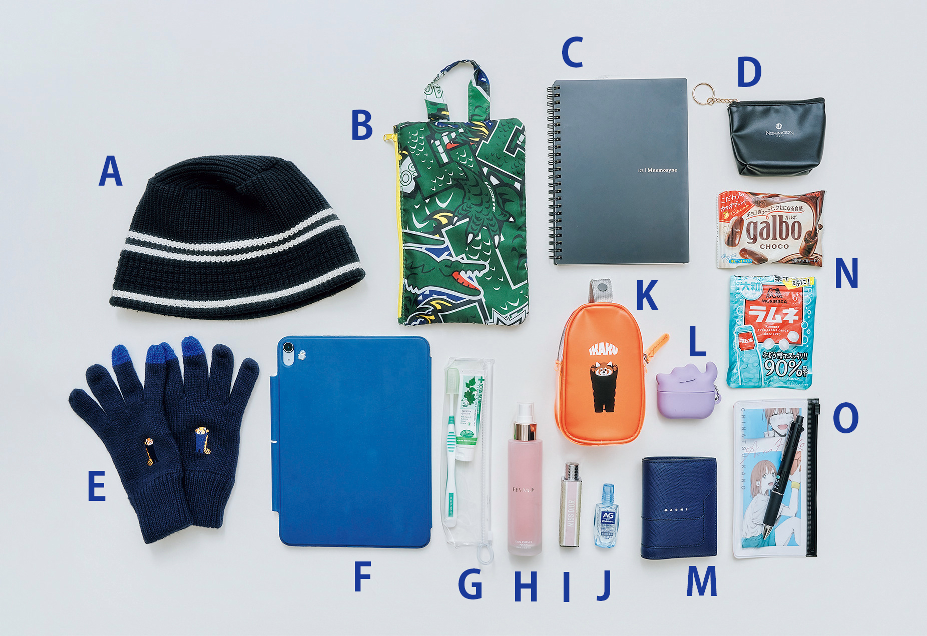 基本的に実用性重視! そのうえで、好きなキャラクターやかわいいものがあれば選ぶようにしているので、一切ムダなものはありません。アイテム選びはかなり慎重で、バッグ含め、よりよい物を求めて探した超選抜アイテムです