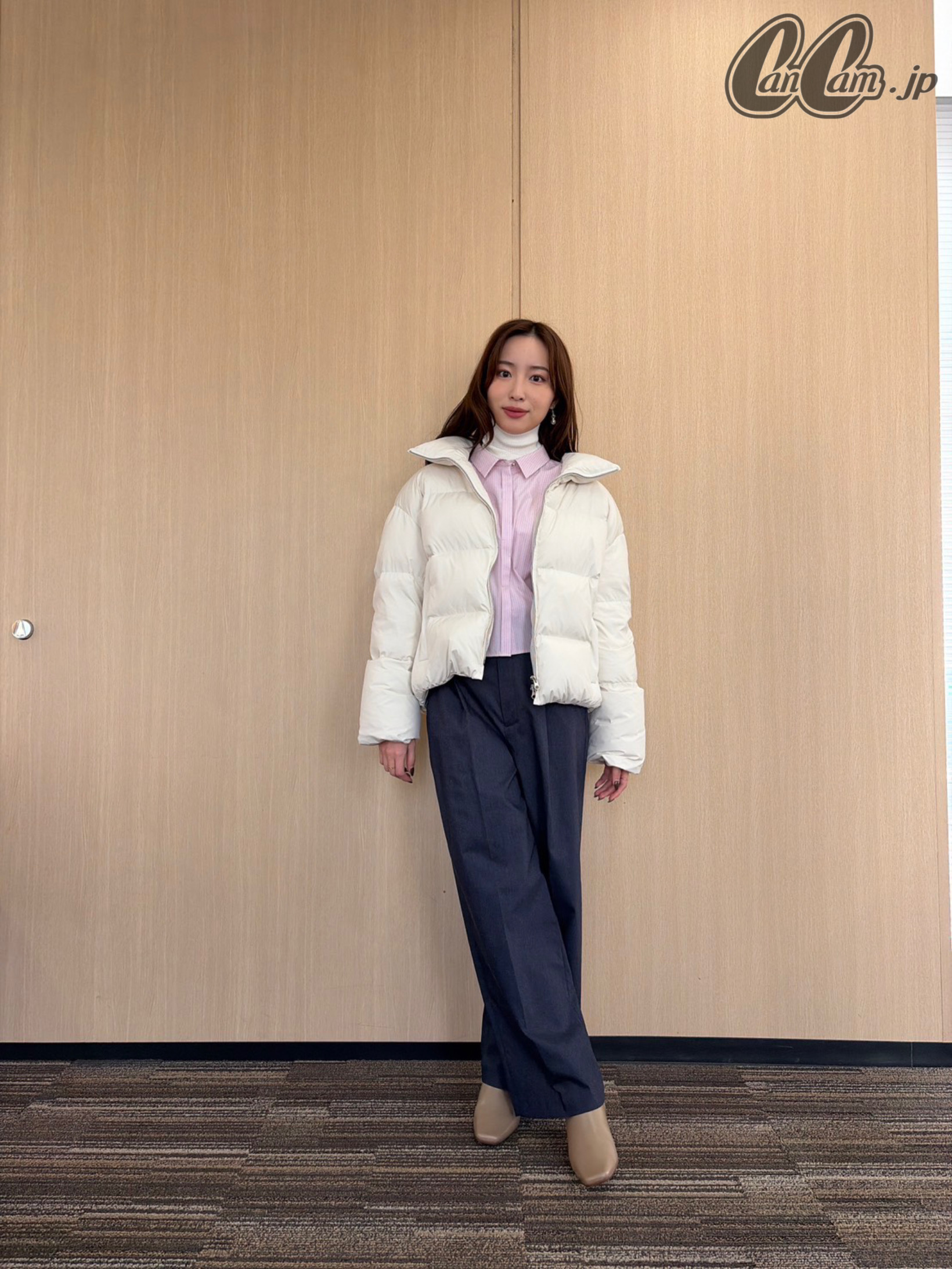 ショート丈のダウンがオフィスコーデにぴったり♡ めざましキャスター・林佑香さんの毎日コーデ【2月19日分】