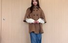コート¥31,900(FRAY I.D)、シャツ¥4,980(index)、ニット¥12,650(マイストラーダ)、パンツ¥4,980(grove)、靴¥37,400(銀座かねまつ)、イヤリング¥4,860(アビステ)
