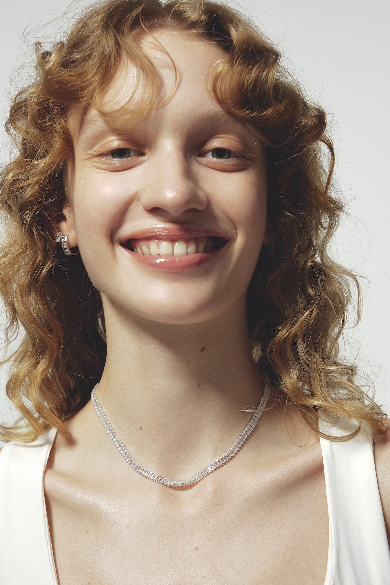 一定のリズムで光を刻み、デコルテに洗練をもたらすネックレス。肌の上に浮かぶような存在感で、モダンな色気を宿します。