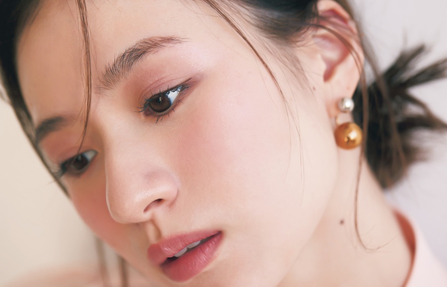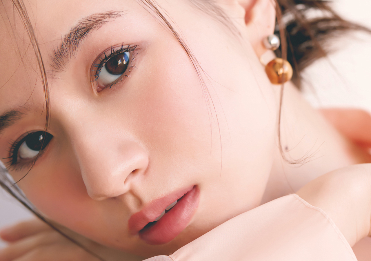 桜の花びらのような白みを含んだ淡いピンクを、ワントーンでまとめるのが今季のムード。透ける質感を重ねることで、肌そのものの透明感を引き立たせて。ベースは青みのある下地でトーンを整え、素肌のようなセミマット肌に仕上げるのが、甘さのあるピンクとの好バランス。幼くならず、きれいめな大人ピンクフェイスが完成!